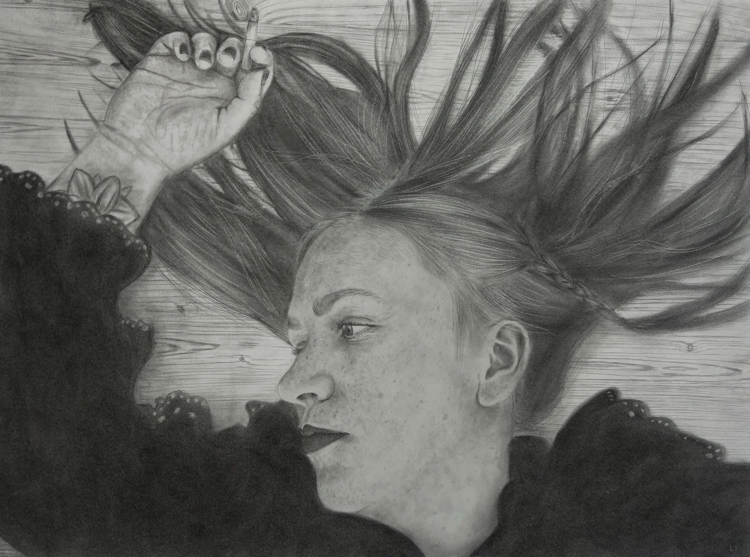 A butterfly state of mind 42x60cm, charcoal & graphite